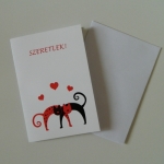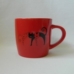 Fehér, 7-es fülû bögre hányó macska mintával.