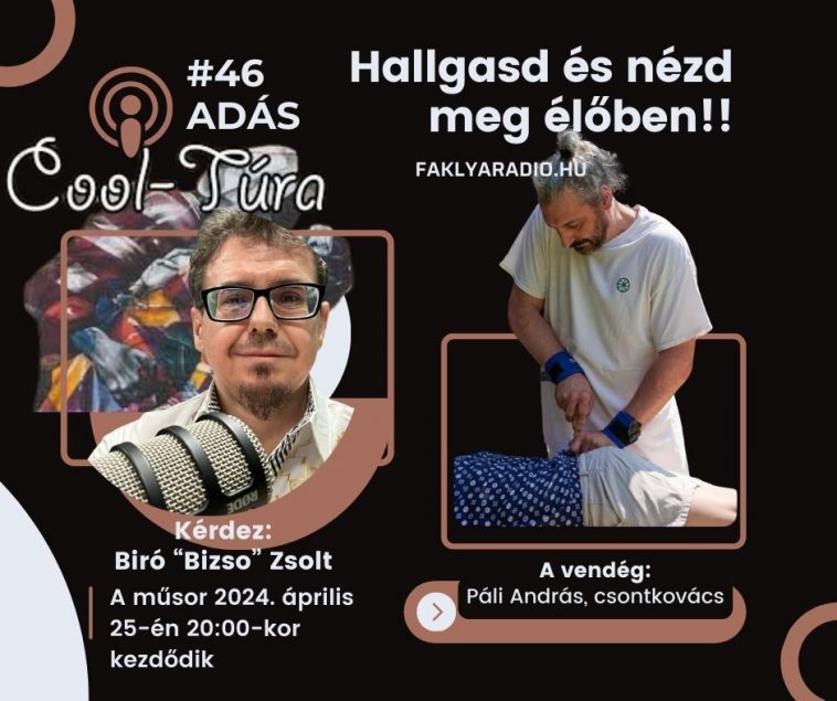 A Fáklya Rádió Cool-Túra című műsorában április 25-én 20 órától ismét különleges vendég érkezik Biró Zsolthoz, mégpedig Páli András csontkovács személyében. Meglehetősen keresett hivatást űz András, hiszen egyre többen érdeklődnek a téma iránt. Most minden kiderül, érdemes hallgatni az adást!