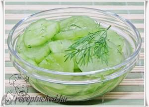 Hozzávalók: 1 kg fürtös uborka só kevés szorbit apróra vágott fokhagyma almaecet, friss kapor Elkészítése: Besózom a meghámozott, majd felszeletelt uborkát, kicsit állni hagyom, kicsavarom, majd almaecettel, kevés szorbittal, apróra vágott fokhagymával, vagy fokhagymaporral keverem. Apróra vágott, vagy szárított kaprot is teszek hozzá, és összekeverem. Néhány órára hűtőbe teszem, majd ismét megkóstolom. Ha szükséges utánaízesítem, […]