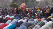 Kairó, Egyiptom – Muszlim vallású hívők a böjt megtörésének ünnepe alkalmából gyűltek össze egy közös imádságra és körmenetre. Szokás ezen az ünnepen megajándékozni a családtagokat.