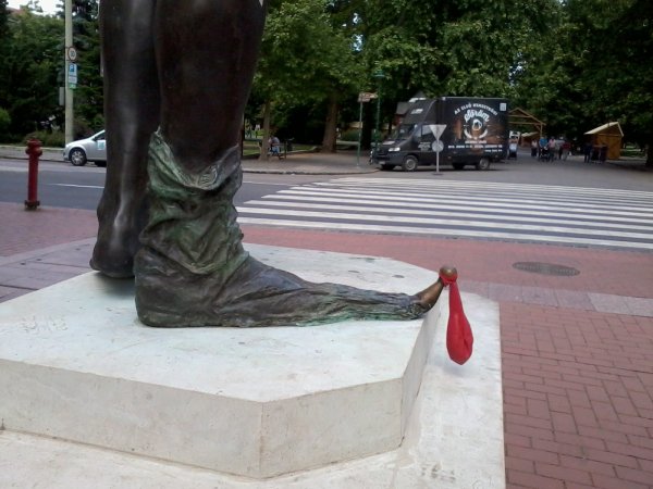 Ezt a fotót ma lőttem, Szeged, Széchenyi tér, egy köztéri szobor, amelyen egy réveteg lufi fityeg..