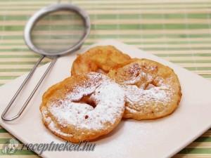 Hozzávalók: 1,5 kg alma 1 kávéskanál őrölt fahéj 1 kávéskanál cukor 1 kanál citromlé 1 tojás 2 dl tej 2 dl ásványvíz 20 dkg liszt kevés só 1 kanál cukor Elkészítése: A lisztből, a tejből, a tojásból az ásványvízzel, csipetnyi sóval és 1 kávéskanál cukorral sűrű palacsintatésztát kavarunk. A meghámozott almák magházát kivágjuk, ujjnyi vastag […]