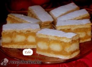 Hozzávalók: Hozzávalók a tésztához: 25 dkg finomliszt 1 kk szódabikarbóna 8 dkg porcukor 2 evőkanál olvasztott méz 5 dkg vaj 1 db tojás 2 ek tejföl A töltéshez: 18-20 db babapiskóta A babapiskóta locsolásához: 1 dl rumos tej A krémhez: 1,5 kg alma 1 kk őrölt fahéj 20 dkg cukor 1 dl tej 2 csomag vaníliás […]