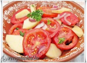 Hozzávalók: 1 nagy fej lilahagyma 2 db zöldalma 10 db nagyobb paradicsom 1 kávéskanál citromlé 1 evőkanál száraz fehérbor kevés petrezselyemzöld csipetnyi só 1 evőkanál teriyaki szósz Elkészítése: A lilahagymát félkarikára vágjuk, a paradicsomot és a zöldalmát felszeleteljük. Enyhén megsózzuk, kevés citromlével, a borral és teriyaki szósszal meglocsoljuk. A szósztól, pikáns, keleties ízt kap, ami […]