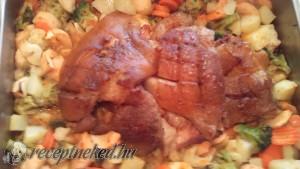 Hozzávalók: 2 kicsontozott csülök 3 alma (savanykás) 30 dkg vegyes mirelit zöldség só bors babérlevél fokhagyma hagyma őrölt kömény majoránna Elkészítése: Kuktában előfőzöm a kicsontozott csülköket babérlevéllel, fokhagymával, majoránnával, őrölt köménnyel, sóval és borssal. A tepsibe halmozott almás-zöldségkeveréket megsózom, megborsozom, majd egy kis főzőlével meglocsolom. Lefedem alufóliával, és forró sütőben megpuhítom. Miután megpuhult a zöldség, […]