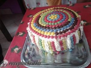 Hozzávalók: A kakaós piskótához: 8 tojás 6 evőkanál liszt 8 evőkanál kristálycukor 2 evőkanál kakaòpor 1 csomag sütőpor A krémhez: 0,5 l cukrászhab 2 stracciatella ízü görög joghurt 1 csomag Aranka krémpor Annyi tej, hogy a krémporból sűrű puding készüljön 1 csomag habfixáló 1 tábla étcsokoládé Ízlés szerint cukor A díszítéshez: 3-4 csomag smarties Elkészítése: Elkészítjük […]