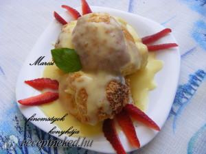 Hozzávalók: 50 dkg liszt 5 dkg olvasztott margarin 3 dkg élesztő 2,5 dl langyos tej kevés só 3 tojássárgája 5 dkg cukor A tetejére: darált dió cukor A krémhez: 1 csomag vaníliás pudingpor 2 ek cukor 6 dl tej Tálaláshoz: eper Elkészítése: Az élesztőt 1 dl langyos tejjel és egy kiskanál cukorral felfuttatjuk. A tojások […]