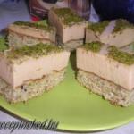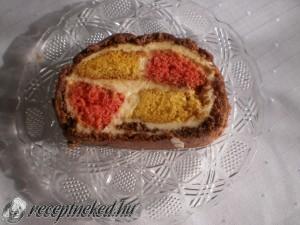 Hozzávalók: Rózsaszín tészta: 2 tojás 3 evőkanál cukor 0,5 cs sütőpor 1 cs puncsos pudingpor Sárga tészta: 2 tojás 3 evőkanál cukor 0,5 cs sütőpor 1 cs vaníliás pudingpor Barna tészta: 4 tojás 6 evőkanál cukor 1 cs sütőpor 2 cs csokoládés pudingpor Krém: 4 dl tej 1 csomag vaníliás pudingpor 25 dkg margarin 25 dkg […]