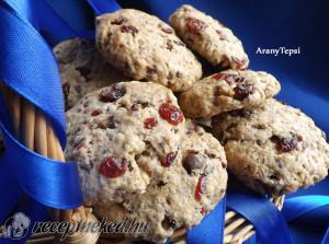Hozzávalók: 25 dkg liszt 10 dkg apró szemű zabpehely 0,5 tasak sütőpor 1 tasak vaníliás cukor 5 dkg barna cukor 10 dkg aszalt vörös áfonya 10 dkg étcsokoládé 15 dkg margarin 5 ek tej Elkészítése: A sütőt előmelegítjük. Egy nagyobb tepsit kibélelünk sütőpapírral. A csokoládét és az áfonyát apróra vágjuk. Egy tálba mérjük a lisztet, a sütőport, […]