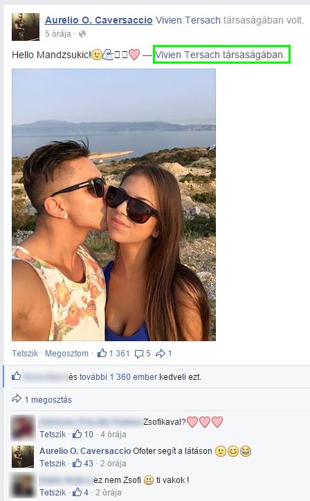 Na, de vessünk egy pillantást az aktuális lányra, akivel a már több földrészen is elpityeredő Aurelio a Facebook-oldalán pózolt: