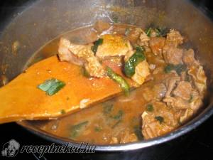 Hozzávalók: 1 közepes fej hagyma 1 gerezd fokhagyma 60 dkg báránylapocka 1 teáskanál só 1 kávéskanál mustár 1 teáskanál szárított tárkony 5 levél friss medvehagyma késhegynyi feketebors 1 db kápia paprika 1 db paradicsom 1 teáskanál fűszerpaprika 4 evőkanál olaj 1 dl húsleves Elkészítése: Az olajon az apróra vágott hagymát és fokhagymát megpirítjuk, majd fűszerezzük […]
