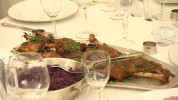 Libanyakleves csigatésztával, libacomb párolt káposztával és rozmaringos burgonyával, Orsolya szelet