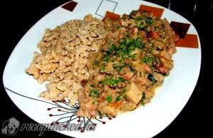 Hozzávalók: 60 dkg sertéslapocka 15 dkg kolozsvári szalonna 30 dkg gomba 1,5 dl sör 2 vöröshagyma 10 gerezd fokhagyma 1 paprika 1 paradicsom 1 dl tejszín 1 dl tejföl 1 ek liszt ízlés szerint petrezselyem 1 tk kakukkfű só, bors Elkészítése: A szalonnát kisütjük, majd félretesszük. A zsíron megdinszteljük a vöröshagymát, hozzáadjuk a fokhagymát és […]