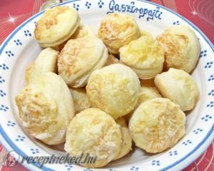 Hozzávalók: 50 dkg liszt 20 dkg margarin 0,5 dl tej 2,5 dkg friss élesztő 1 kk só 2 tojássárgája (a fehérjét felhasználjuk a kenéshez) 1 pohár tejföl (2 dl) reszelt sajt (kb. 150 g) Elkészítése: Egy tálban elmorzsolom a liszttel a margarint és a sót. Középre, kis mélyedésbe beleteszem a tojások sárgáját, a szétmorzsolt élesztőt […]