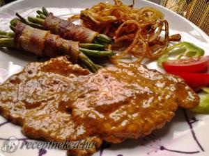 Hozzávalók: 8 szelet sertéskaraj csont nélkül 5-6 fej vöröshagyma 2-3 evőkanál mustár őrölt fekete bors 1 dl fehér bor / én muskotályost használtam / só étolaj teljes kiőrlésű liszt 1 kg ceruza bab 1 cs szeletelt bacon Elkészítése: A ceruzababot megmossuk, végeit levágjuk, 6-8 percre sós forrásban lévő vízbe dobjuk majd jéghideg vízbe szedjük. Ha a […]