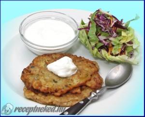 Hozzávalók: 5 db nagyobb krumpli 1 db nagyobb hagyma 3 db tojás 2 evőkanál liszt 1 kis kanál só bors ízlés szerint Tehető még hozzá apróra vágott snidling, újhagyma, és petrezselyem zöld is Olíva, vagy napraforgóolaj a sütéshez Elkészítése: A burgonyát lereszeljük, megsózzuk, kicsit állni hagyjuk. Kinyomkodjuk belőle a nedvességet, majd összekeverjük a lereszelt hagymával, […]