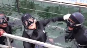 Georgina Harwood szeret az élet veszélyes oldalán élni. Mi sem bizonyítja ezt jobban, mint az, hogy alig két nappal azután, hogy a 100 éves nő kiugrott egy repülőből, most cápákkal merült Dél-Afrikában. VIDEOKREDIT: MARINE DYNAMICS