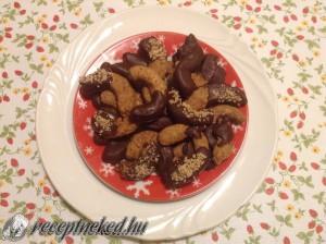 Hozzávalók: 4 ek cappuccino por 50 ml víz 30 dkg liszt 10 dkg darált dió 10 dkg cukor 20 dkg margarin 5 dkg csokoládé darált dió Elkészítése: A cappuccino port feloldjuk fél dl forró vízben és kihűtjük. A lisztet összekeverjük a dióval, a cukorral, egy csipetnyi sóval, majd hozzáadjuk a vajat és a kihűlt kávét. Tésztává […]