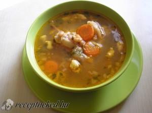 Hozzávalók: 1,5 kg sertésláb (köröm) 2-2 szál vegyes zöldség 1 csokor petrezselyemzöld só bors 1 konzerv chilis fehérbab 0,5 zellergumó 1 db vöröshagyma 2-3 gerezd fokhagyma 2 kk fűszerpaprika piros 1 tojásból és lisztből galuska Elkészítése: A körmöket jól megmossuk, és egy 4 literes fazékban feltesszük főni, sóval, egész borssal és fokhagymával. A zöldségeket meghámozzuk […]