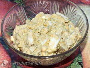 Hozzávalók: 4 tojás 2 ek majonéz 0,5 tk mustár reszelt citromhéj 1 tk apróra vágott petrezselyem 1 tk apróra vágott kapor só bors Elkészítése: A tojásokat 13 percig főzzük, majd leöntjük róla a vizet, és hagyjuk teljesen kihűlni. Megtisztítjuk a héjától, és apró kockára vágjuk. Összekeverjük a majonézzel, a mustárral, a citromhéjjal, a zöldfűszerekkel, majd […]