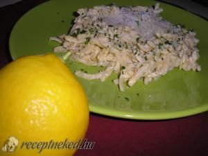 Hozzávalók: 40 dkg olasz linguine tészta 1/2 citrom leve 1 citrom héja 1,5 dl tejszín tengeri só őrölt fehér bors 2 gerezd fokhagyma 1 marék bazsalikomlevél 1 teáskanál vaj frissen reszelt parmezán 2 tk kapribogyó aprítva Elkészítése: A tésztát forró, sós vízben felteszem főni. A zúzott fokhagymát kevés vajon épphogy megpirítom. Felöntöm a tejszínnel, belereszelem […]
