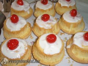 Hozzávalók: 12 dkg margarin 12 dkg porcukor 1 citrom reszelt héja 2 tojás 7 dkg liszt 6 dkg étkezési keményítő 1 kk sütőpor Máz 12 dkg porcukor 1 citrom leve 12 db koktélcseresznye Elkészítése: A kevert tésztát a fenti hozzávalókból géppel jól kikeverjük, hogy egy sűrű állagú tésztát kapjunk. Megtöltjük a papírral bélelt muffin forma […]