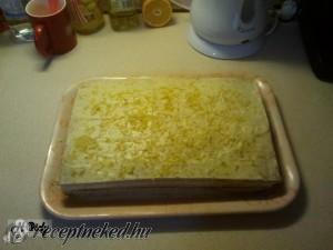 Hozzávalók: Laphoz: 0,5 kg liszt 2 tojássárgája 250 g margarin 3 ek tejföl 10 dkg cukor 1 citrom 1 kk szódabikarbóna Krémhez: 1 csomag vaníliás pudingpor 15 dkg cukor 2 ek liszt 3 dl tej 250 g margarin 2 citrom lekvár (a legjobb a narancslekvár, de lehet bármilyen, ami van otthon) Díszítés: 200 g fehér […]