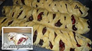 Hozzávalók: 3 rúdhoz Tészta: 1 dl tej 2 dkg élesztő 2 ek kristálycukor 50 dkg rétesliszt 20 dkg sütőmargarin vagy vaj 1 mk só 2 tojás Cseresznyés töltelék (1 rúd): 50 dkg kimagozott cseresznye 5 dkg darált dió 2-3 ek kristálycukor 1 mk őrölt fahéj Túrós töltelék (1 rúd): 50 dkg túró 5 dkg mazsola […]
