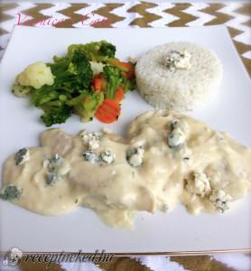 Hozzávalók: 60 dkg csirkemell só bors olaj a sütéshez Mártáshoz: 4 dl tej 1 dl főzőtejszín 10 dkg ementáli sajt 15 dkg rokfort (márványsajt) 2 ek vaj 2 ek liszt só bors 2 gerezd fokhagyma csipet metélőhagyma Elkészítése: A csirkemellet szeletekre vágjuk, egy kicsit kiklopfoljuk, sózzuk, borsozzuk. A mártáshoz a lisztet csomómentesen elkeverjük a tejjel […]