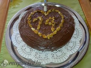 Hozzávalók: Tésztához: 15 dkg cukor 20 dkg liszt 1 evőkanál cukrozatlan kakaópor 3 tojás 1 kiskanálnyi sütőpor 3 evőkanál főtt kávé Csokikrémhez: 3 evőkanál finomliszt 3 evőkanál cukrozatlan kakaópor 20 dkg barna cukor (de jó sima kristálycukorral is) 2 tojás 3 dl tej 12 dkg vaj A díszítéshez: dió 15 dkg étcsokoládé 2 teáskanálnyi vaj […]