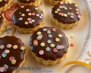 Hozzávalók: 30 dkg liszt 1 kk sütőpor 10 dkg porcukor 1 tasak vaníliás cukor 1 csipet só 20 dkg margarin 1 tojás sárgája 1 kis üveg baracklekvár fele 10 dkg étcsokoládé 2 tk olaj 1 marék színes cukorka Elkészítése: A lisztet egy tálba szitáljuk, majd elkeverjük benne a sót, sütőport, porcukrot, vaníliás cukrot. Összedolgozzuk a […]