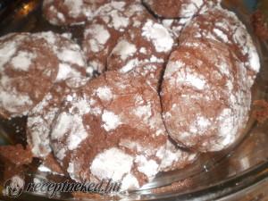 Hozzávalók: 200 g étcsokoládé 100 g vaj 165 g cukor 3 tojás 1 tk vanília aroma 225 g liszt 1/2 tk sütőpor 2 ek kakaópor 150 g porcukor Elkészítése: A csokoládét és a vajat vízgőz felett összeolvasztjuk, 5 percig állni hagyjuk. Fakanállal belekeverjük a tojásokat, jól összekeverjük homogén masszává. Hozzáadjuk a vaníliát, a lisztet, a kakaóport, […]