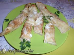 Hozzávalók: 3 tojás 15 csapott ek finomliszt 1 teáskanál só 4 dl tej 0,5 dl napraforgó olaj 30 dkg sajt 1 dl szódavíz 2 dl tejföl Elkészítése: A tojásokat kikeverjük a tejjel, olajjal, szódavízzel, liszttel és a sóval. Olajjal kikenet palacsintasütőben egyesével kisütjük a palacsintákat. Mindegyik palacsintát reszelt sajttal megszórjuk, feltekerjük és olajjal kikent jénaiba […]