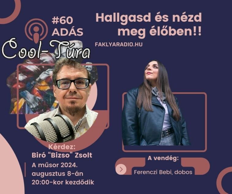 Ferenczi Bebi női dobos, ami még mindig némileg különlegesnek hat, mert valahogy elkönyveltük a dobszerkót férfiasnak hangszernek. Biró Zsolt a Fáklya Rádió Cool-Túra című műsorában most a vidám és vagány Bebit látja vendégül, augusztus 8-án, 20 órától! Most is érdemes lesz hallgatni!