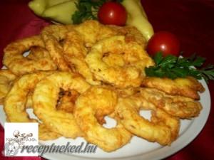 Hozzávalók: 1 nagyobb cukkini A bundához: 3 tojás liszt só őrölt bors 15 dkg reszelt sajt A sütéshez: étolaj Elkészítése: A cukkinit meghámozzuk, 1 cm-es darabokra szeljük, és a magházat kivájjuk. A korongokat megmossuk, megsózzuk. 3 tojást felverünk, hozzáadunk lisztet, vizet, sót és borsot. Közepes sűrűségű palacsinta tésztát keverünk. Végül hozzákeverjük a reszelt sajtot. A […]