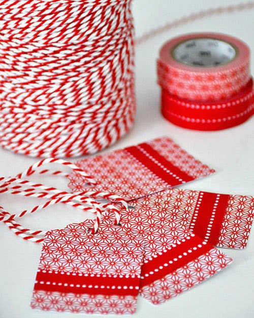 Ajándékkísérő kártyákat is dekorálhatunk a tapasszal, majd egy kevés pékzsineggel kiegészítve mehetnek is a csomagjainkra!