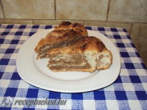 Hozzávalók: Tészta: 30 dkg liszt (15 dkg rétesliszt, 15 dkg búzafinomliszt) 1-2 ek cukor 1 csomag szárított élesztő 180 ml langyos víz 5 dkg margarin 1 csipet só Töltelék: 200 g darált dió 100 g cukor 100 ml forró víz rumaroma 1 mk fahéj Elkészítése: A tésztához a lisztet, az élesztőt, a sót, a cukrot […]