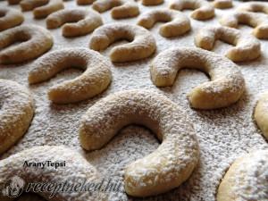 Hozzávalók: 25 dkg liszt 10 dkg porcukor 10 dkg darált dió 1 késhegynyi sütőpor 20 dkg margarin 1-2 ek vaníliás porcukor a tetejére Elkészítése: A lisztet egy tálba szitáljuk, majd hozzákeverjük a porcukrot, a sütőport és a darált diót. Végül gyors mozdulatokkal összedolgozzuk a puha margarinnal. Folpackba csomagolva legalább 1 órát a hűtőben pihentetjük. (Nálam egy […]