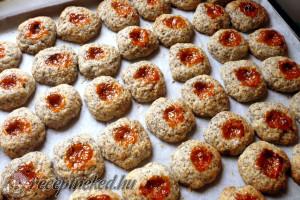 Hozzávalók: 25 dkg puha margarin 14 dkg cukor csipet só 1 csomag vaníliás cukor 1 tojás 1 narancs reszelt héja 14 dkg darált mák 40 dkg liszt 2-3 ek sárgabaracklekvár Elkészítése: A puha margarint kikeverjük a cukorral, csipet sóval, a vaníliás cukorral és a lazán felvert tojással. Beledolgozzuk a narancs reszelt héját, a darált mákot […]