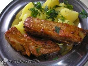 Hozzávalók: 8 szelet sertésoldalas 1 csomag oldalas fűszerkeverék olíva olaj 1/2 dl sherry alufólia a takaráshoz Elkészítése: Az oldalast megmossuk és a fűszerkeverékkel megszórjuk mindkét oldalát, majd a teflonos tepsibe helyezzük, megöntözzük olívaolajjal és 1 dl fehér száraz sherryvel. Fóliával letakarjuk és 60 percig sütjük 150 fokos sütőben. Közben megforgatjuk, és ha szükséges, még öntünk […]