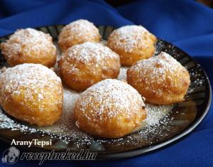 Hozzávalók: 25 dkg túró 1 nagy csipet só 1 tasak vaníliás cukor 1 citrom reszelt héja 5 tojás 5 púpos ek liszt 1 tasak sütőpor 5-6 dl olaj a sütéshez Elkészítése: A lisztet egy tálba szitáljuk, és elkeverjük benne a sütőport. A túrót jól áttörjük (erre a krumplitörőt használtam), majd hozzáadjuk a csipet sót, a […]