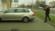 Jenő fegyverrel a kezében szólítja fel Alexát, hogy szálljon ki a járművéből.