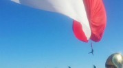 Mexikó – Egy katonai parádén pórul járt az a katona, aki nem engedte el időben a hatalmas mexikói zászlót, amint abban belekapott a szél, így több méter magasba repítve magával az illetőt is. Videokredit: Armando Silva Salazar