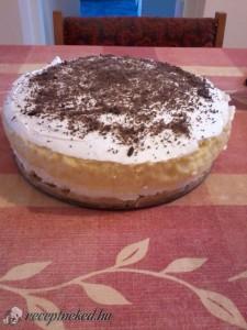 Hozzávalók: 1. réteghez: 25 dkg darált háztartási keksz 5 dkg margarin 5 dkg porcukor kevés tej 2. réteghez: 20 dkg túró 10 dkg porcukor 2 dl hulala 1 cs vaníliás cukor 3. réteghez: 2 cs vaníliás krémpor (hidegen keverhető) 5 dl tej 1 cs vaníliás cukor 4. réteghez: 2 dl habtejszín 5 dkg porcukor csoki […]