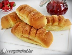 Hozzávalók 10 db buktához: 50 dkg liszt 3 ek porcukor 1 tk só 2 db tojássárgája 2,5 dl tej 5 dkg vaj 2,5 dkg élesztő 1 kisebb üveg eperdzsem A lekenéshez, szóráshoz: 4-5 ek kristálycukor 1 ek őrölt fahéj 3 dkg vaj Elkészítése: Az élesztőt futtassuk fel egy kevés langyos, cukros tejben. A vajat olvasszuk […]
