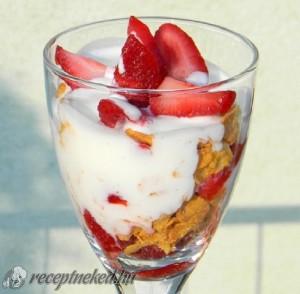 Hozzávalók: Személyenként: 1 marék natúr kukoricapehely 4-5 szem eper 1,5 dl natúr joghurt 2 evőkanál méz Elkészítése: Az epret mossuk meg, majd csepegtessük le, vágjuk gerezdekre a szemeket. A joghurthoz keverjük hozzá a mézet. Egy pohár aljába helyezzünk néhány gerezd epret, szórjunk rá kukoricapelyhet, majd ismét epret. Rétegezzük egymás után, majd öntsük rá a mézes […]