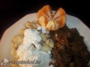Hozzávalók: A raguhoz: 30 dkg szarvascomb (csont nélkül) 1 ek sertészsír 5 dkg füstölt szalonna 1 fej vöröshagyma 1 gerezd fokhagyma 15 dkg erdei gomba 1 sárgarépa kisebb zeller fele 1 csípős hegyes paprika 1 paradicsom 1 szál zellerlevél 3 szál petrezselyem 1 babérlevél 2 szem borókabogyó 2 szem szegfűszeg só őrölt kömény őrölt fekete […]