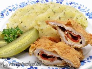 Hozzávalók: 1 kg borjú comb 1 szál házi füstölt szalámi 15 dkg félkemény sajt só kevés tej és 3-4 gerezd fokhagyma a hús beáztatásához liszt, tojás, zsemlemorzsa a panírozáshoz olaj a sütéshez Elkészítése: A borjúcombot felszeleteljük, majd kiklopfoljuk belülről kifelé. A hússzeleteket tej, és zúzott fokhagyma (esetleg fokhagymapor) keverékébe áztatjuk néhány órára. Lecsöpögtetjük, leitatjuk, majd […]