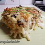 Hozzávalók: Tészta: 4 bögre liszt 4 tojás 1 bögre olaj 2 bögre tejföl 2 bögre cukor ízlés szerint vaníliás cukor 2 teáskanál só 2 zacskó sütőpor 3-4 evőkanál holland (keserű) kakaópor A krémhez 1 csomag vaníliás főzés nélküli tortakrém 1 csomag főzés nélküli vaníliás pudingpor 1 – 1,5 liter tej 2,5 dl tejszín A csokoládé […]