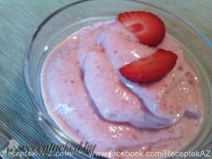 Hozzávalók: 100 g fagyasztott banán 150 g fagyasztott eper 100 g tejszínes túrókrém ( 180 ml tejszín, 3 ek xilit, 250 g zsírszegény túró, citromlé) Elkészítése: A fagyasztott banánkarikákat és a fagyasztott epret késes aprítóba tesszük és kb. 10 percet állni hagyjuk. Majd bekapcsoljuk a gépet és a gyümölcsöt alaposan felaprítjuk. Hozzáadjuk a tejszínes túrókrémet […]